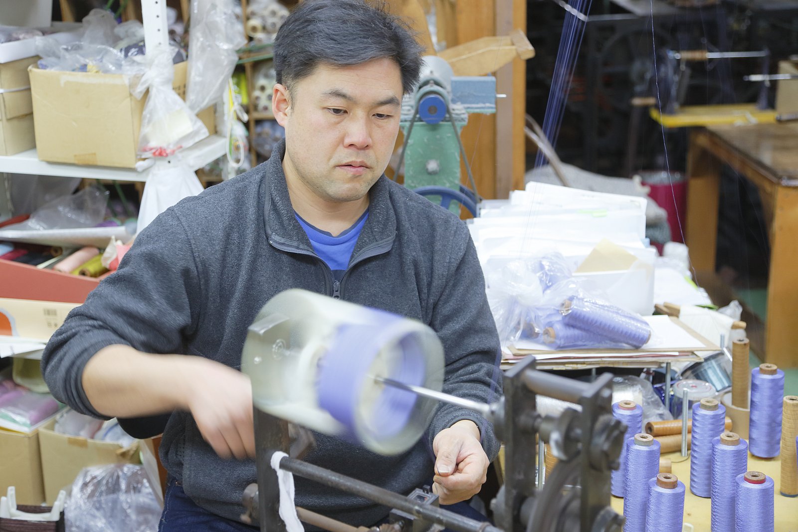 Hejaku is the handcrafted process of taking the single fibers spools and customizing the fiber count and material onto hand-spun spools called waku.