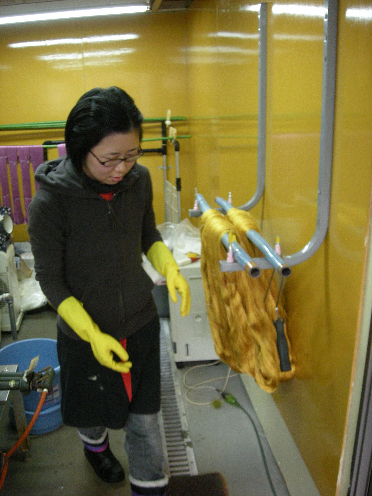 Senshoku refers to the process of cleaning and refining the fibers to absolute purity. Then dyeing the fibers to the required color palette. From here it is rested before it continues on in the refinement process.